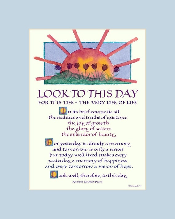 Look to This Day 8×10 Calligraphy Print, Inspirational Quote, Wall