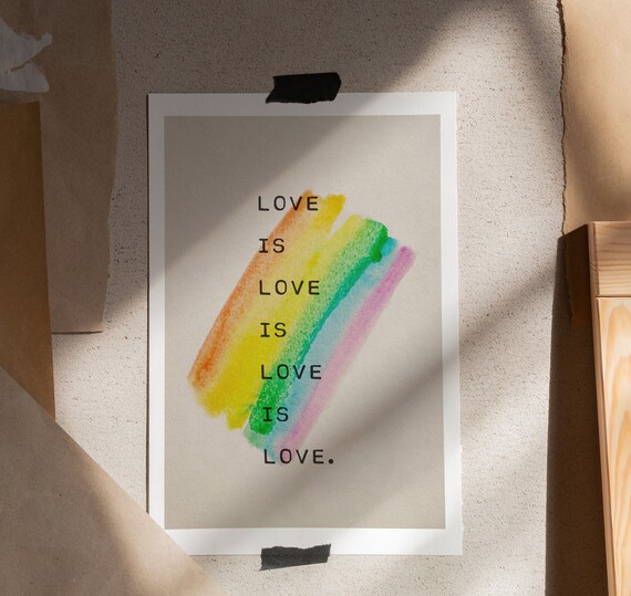 LBGQTA Love is Love, Pride Poster, Rainbow Art, Love Quote, Lgbt